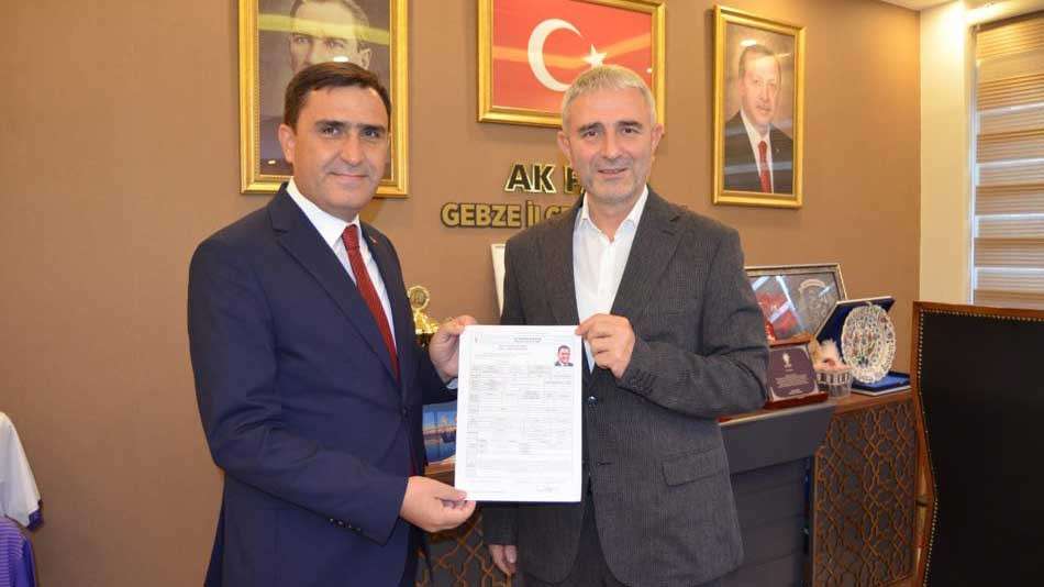 Kocaeli Büyükşehir Belediyesi eski genel sekreter yardımcısı Mustafa Altay, Ak Parti Gebze Belediye Başkan aday adaylığı için başvuru evrakını ilçe başkanı Recep Kaya'ya teslim etti..