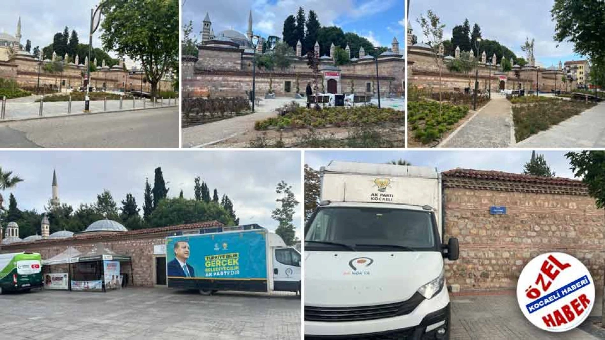 Çoban Mustafa Paşa Caminin, İzmit yönüne bakan doğu cephesindeki boş alan, önceki belediye başkanı döneminde Ak Partili bir doktorun özel hastanesine araç parkı olarak tahsis edilmişti.