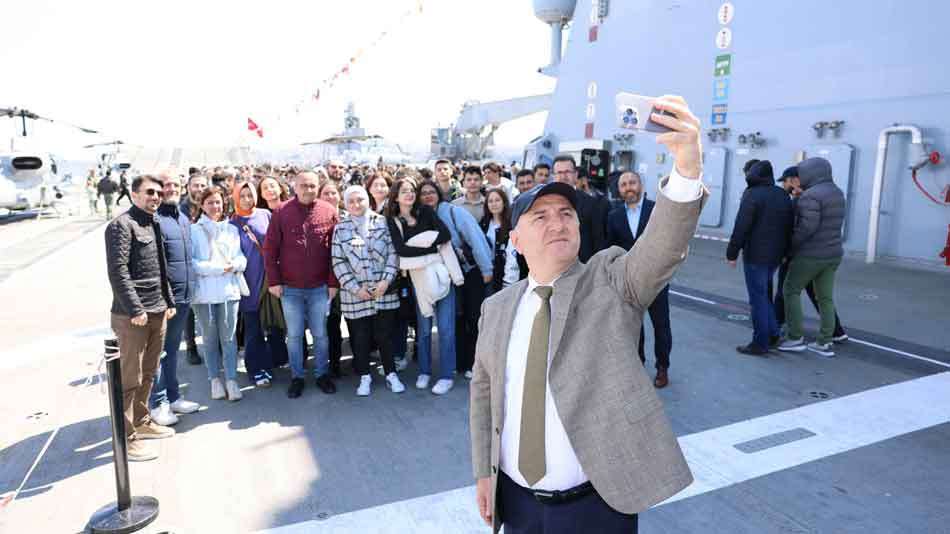 Dünyanın ilk SİHA gemisi ve Türkiye'nin en büyük askeri gemisi olan TCG Anadolu Gemisi’ne ziyaretçi akını olurken Darıca Belediye Başkanı Muzaffer Bıyık da gençlerle birlikte Sarayburnu’nda demirleyen gemiyi ziyaret etti.