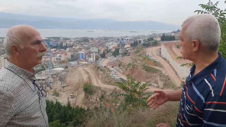 Ömer Faruk Gergerlioğlu: Bu bölgelerden çok hastam oldu. Göğüs hastalıkları uzmanı olarak çalışırken bu bölgelerden gelen hastalarımız kanser olan, KOAH olan hastalarımız oldu, zaten İzmit hava kirliliği açısından sıkıntılı bir yer bir de böyle Erenler Mahallesi’ni tehdit eden, şehrin göbeğinde bir gürültü ve toz kirliliği var. Muhtarımın gündeminde, inşaat çalışmalarından bir görüntü var. Bahsettiğimiz taş, kaya kırma makinasına iş aletleri kayaları atıyor un ufak ediliyor, buradan çıkan toz mahalleye doğru gidiyor. Bunlar çok büyük sağlık sorunlarına yol açıyor, vatandaşlar mağdur her gün evlerini temizlemek zorunda kalıyorlar.