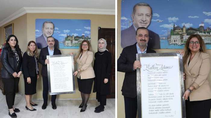 Özlem Kozankurt bugün Ak Parti Kocaeli İl Başkanı Dr. Şahin Talus'u ziyaret ederek, Cumhurbaşkanı Recep Tayyip Erdoğan için yazmış olduğu "HALKIN ADAMI" isimli şiirini hediye etti..