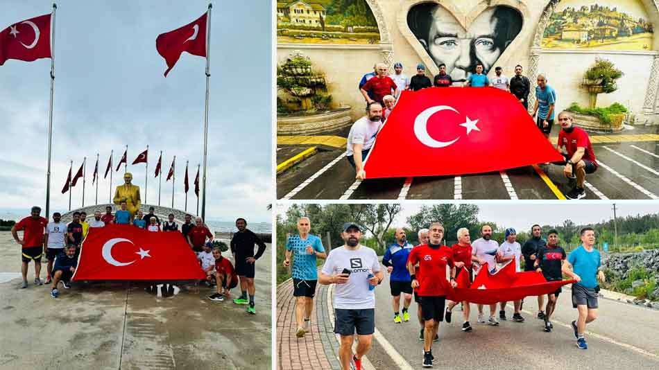 Gebze Eskihisar sahilinden Darıca sahilindeki Atatürk büstünün önüne kadar koşan Gebzeli atletler, Atatürk'ün önünde ellerindeki bayrak ile fotoğraf çektirmeyi unutmadılar.