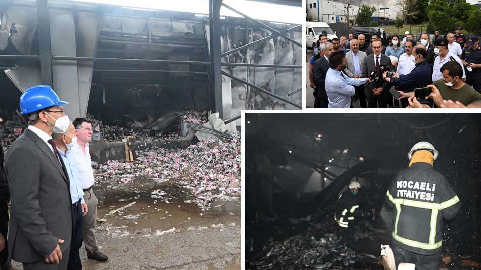 Vali Seddar Yavuz, Dilovası Organize Sanayi Bölgesinde faaliyet gösteren kimya fabrikasında meydana gelen yangınla ilgili incelemelerde bulunarak yetkililerden bilgi aldı.
