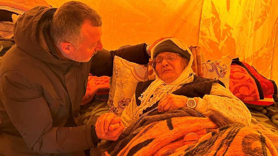 Raziye teyzenin çadırdaki yatağının başına oturan ve onun gözlerinden dökülen yaşları gören Başkan Büyükakın da çok duygulandı. Raziye teyzenin ellerinden öpen ve sevgiyle boynuna sarılan Başkan Büyükakın, ‘’Teyzeciğim senin bir duan bize de bu millete de yeter. Allah seni başımızdan eksik etmesin. Neye ihtiyacın varsa biz buradayız. Artık Hatay da, Defne de bizim memleketimiz. Burayı Kocaeli’den ayrı görmüyoruz. Senin de, bu büyük afette evleri yıkılan ya da hasarlı olduğu için giremeyen tüm kardeşlerimizin de yanındayız, hizmetindeyiz’’ karşılığını verdi.