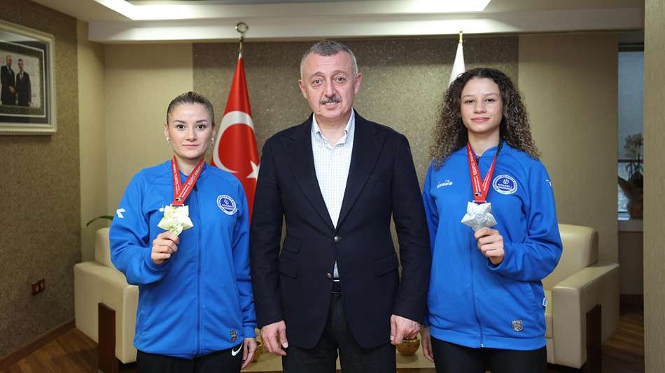 Macaristan’ın başkenti Budapeşte’de düzenlenen 26. Büyükler Dünya Şampiyonasında 55 kilogram kumite dalında altın, 61 kilogram kumite dalında gümüş madalya kazanan sporcuları makamında ağırlayan Başkan Büyükakın, “Cumhuriyetimizin 100. yılında elde ettiğiniz bu büyük başarı için sizleri canı gönülden kutlarım” dedi