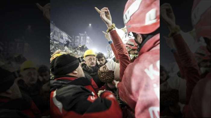 Depremin ikinci gününden beri görevli olarak Antakya'da olan Kocaeli Büyükşehir Belediye Başkanı Doç. Dr. Tahir Büyükakın, enkaz altında vermiş olduğu dokuz günlük yaşam mücadelesini kazanmış olan kadının dışarıya çıkarılış anında ellerini havaya kaldırarak yapmış olduğu zafer işaretinin fotoğrafını, sosyal medyadan "Allahuekber!" ifadesi ile paylaştı..