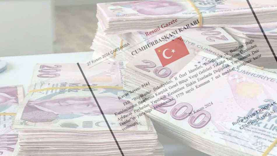 Resmi Gazetede yayımlanan Cumhurbaşkanı Kararı ile Büyükşehir Belediyeleri, İl Özel İdareleri, Belediyeler ve bunların bağlı kuruluşlarının borçlarına karşılık, Genel Bütçe Vergi Gelirleri tahsilat toplamı üzerinden ayrılacak paylardan yapılacak kesintilere ilişkin esaslarda değişiklik yapıldı. Bu değişikliğe göre Devlet belediyelerdenm alacağı borçlar için belediylerin iştirak ortağı olduğu belediye şirketlerinin maddi varlıkları üzerinden de tahsilat yapabilecek..