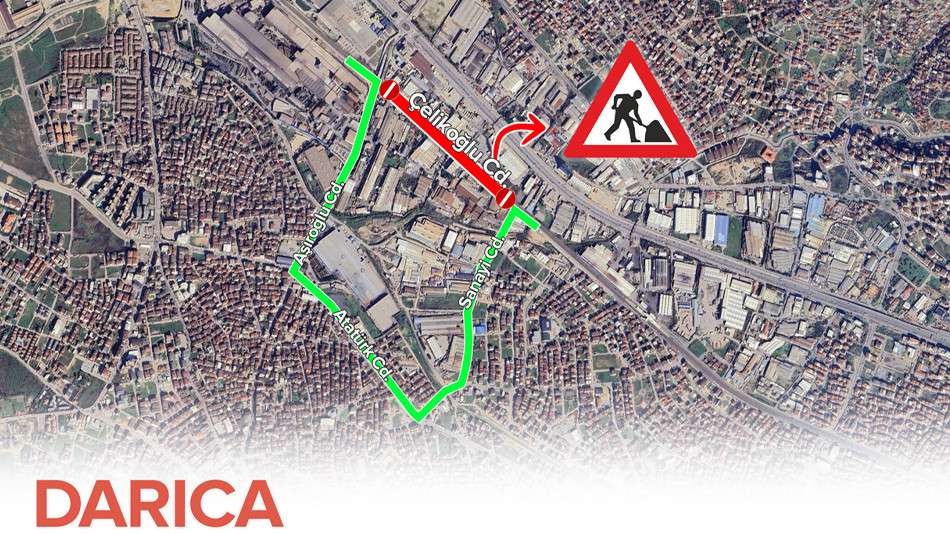 Büyükşehir Belediyesi'nden yapılan yazılı açıklamaya göre Darıca İlçesi, Sırasöğütler Mahallesi, Çelikoğlu Caddesi üzerinde altyapı imalat çalışması yapılacak