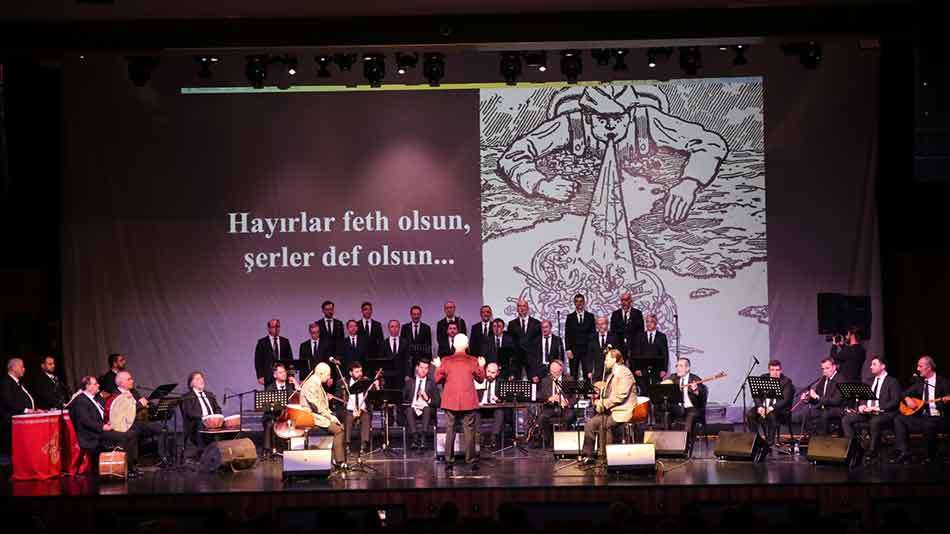 Büyükşehir tarafından düzenlenen Çanakkale Şehitlerini Anma Programı’nda İstanbul Tarihi Türk Müziği Topluluğu, büyük destanın seyrini anlatan bir repertuar sundu. Sanat yönetmenliğini Mehmet İhsan Özer’in yaptığı İstanbul Tarihi Türk Müziği Topluluğu’nun program icrası yapıldı. Kur’an-ı Kerim ile başlayan icrada; marşlar, türküler, ilahiler, ağıtlar, şarkılar ve şiirler okundu.