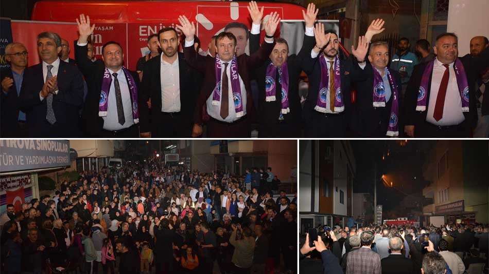 Ak Parti, Çayırova ilçesinde mevcut belediye başkanı Bünyamin Çiftçi'yi tekrar belediye başkan adayı gösterdi. Bu karar, Ak Parti Çayırova eski ilçe başkanları, eski belediye başkanları ve partililer arasında pek olumlu karşılanmazken, seçim sandığında oy kullanma tercihlerine yönelik bir takım sıkıntılarıda beraberinde getirdi.. Çayırova önceki dönem belediye başkanı Şevki Demirci'de bu kararı beğenmedi ve  "yarışta ben de varım" diyerek, İYİ Parti Çayırova Belediye Başkan adayı oldu. Şevki Demirci'ye Saadet ve Gelecek Partisi yöneticilerinden ve parti tabanlarından da büyük destek gelirken, DEVA Partisi Çayırova ilçe başkanı Mehmet Saraç ise yönetimiyle birlikte partilerinden istifa ederek, Şevki Demirci'nin yanında saf tuttular.. Ak Parti Çayırova tabanında Bünyamin Çiftçi'nin tekrar başkan adayı gösterilmesine karşı olanların ise tepkilerini sandıkta gösterecekleri konuşuluyor. Çayırov'nın tüm mahallelerine hane ve iş yeri ziyaretlerinde bulunan Şevki Demirci, hemşeri derneklerini ziyaret etmeyi de ihmal etmezken, dün akşam gittiği Çayırova Sinoplular Derneği'nde de tıpkı diğer hemşeri derneklerinde olduğu gibi çok yoğun bir ilgi, sevgi ve coşkuyla karşılandı.. Şevki Demirci o coşkulu anları sosyal medyadan "Türkiye’mizin en kuzeyi, maviyle yeşilin sımsıkı kucaklaştığı güzel Sinop’umuzun kıymetli insanları bu akşam bizleri bağrına bastı! Çayırova Sinoplular Derneği buluşmamızda sokaklara sığmadık. Bizi yüreğinde saklayan tüm Sinoplu kardeşlerime sevgiler, saygılar. Birlikte adım adım zafere! Her şey iyi olacak. Çayırova için iyi olacak" sözleri ile duyurdu..