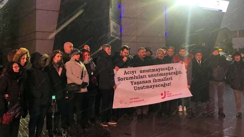 6 Şubat 2023 Kahramanmaraş Depreminin yıldönümünde, CHP Gebze İlçe Gençlik Kolları kent meydanına çıkarak "Acıyı unutmayacağız, sorumluları unutmayacağız, Yaşanan ihmalleri Unutmayacağız!" yazılı bir pankart açtılar..