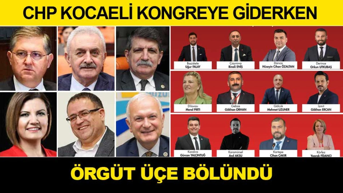 19 Ekim 2025 Pazar günü Kocaeli Kongre Merkezi’nde gerçekleştirilecek olan CHP Kocaeli İl Kongresi için siyaset kulisleri fena kaynarken il başkan adayı sayısı üçe çıkmış ve örgüt adeta üçe bölünmüş durumda..