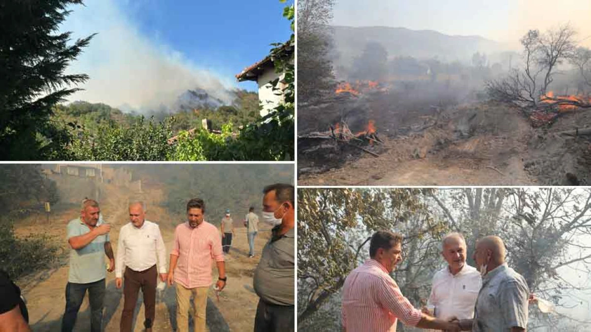 CHP Kocaeli İl Başkanı Bülent Sarı ve CHP'li Karamürsel Belediye Başkanı Ahmet Çalık yanlarundaki yönetici arkadaşları ve teeknik ekip ile birlikte Karamürsel’de çıkan orman yangını bölgesini yerinde takip ettiler..