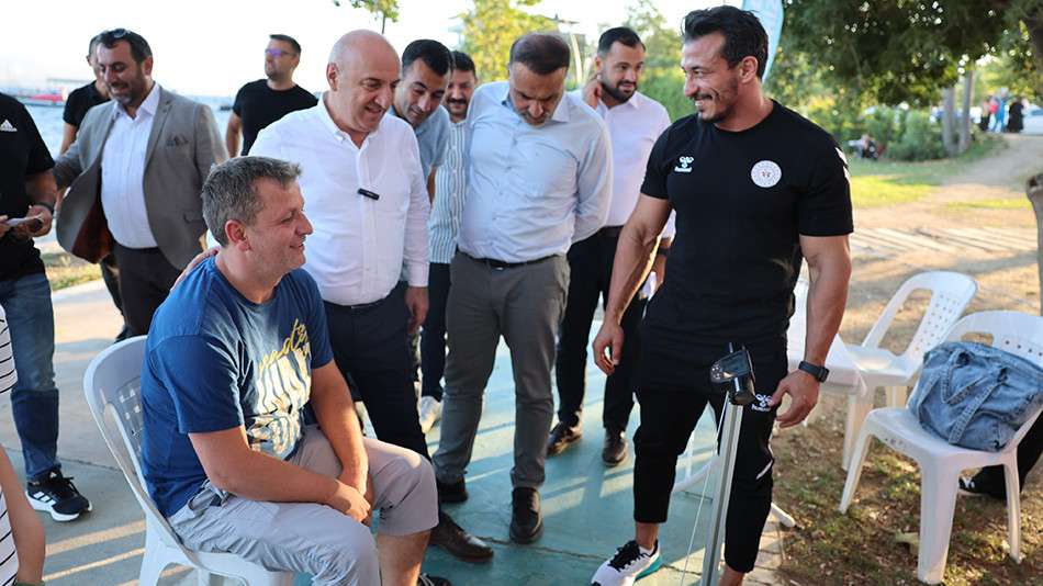 Darıca Belediyesi Gençlik ve Spor Müdürlüğü tarafından yürütülen proje vatandaşların uzmanlar eşliğinde vücut ölçülerinin sağlıklı olup olmadığı belirlenmeye çalışıldı. Katılımcıların vücut endeks ölçüleri alındı. Darıca Belediye Başkanı Muzaffer Bıyık da etkinlik alanını ziyaret ederek vatandaşlarla sohbet etti. Projeyle ilgili konuşan Darıca Belediye Başkanı Muzaffer Bıyık “Projemizin amacı sağlıklı vücut sağlıklı yaşam ve vücut analizi projesi. Darıca Belediyemizin eğitim spor kulübündeki hocalarımızla, diyetisyenlerimizle, yaşam koçlarımızla beraber burada vatandaşımızın vücut yapısının analiz edildiği yağ oranlarının bölgesel anlamda hangi sporla ilgilenmesi konusunda hem yaşam koçumuzun hem de diyetisyenimizin danışmanlık hizmeti vermesi gerektiği kanaatindeyiz. Buradaki projemizin amacı o, bir yandan da vatandaşlarımızı belediyemizin spor alanlarındaki yaptığı aktivitelere davet etmek yönlendirmek oralarda daha aktiflik, daha dingin hissedeceği sporla buluşturmayı amaç ettiğimiz bir proje. Yaz boyunca farklı mahallelerde Darıcalılarla buluşarak daha çok vatandaşımızın sporla buluşmasına katkıda bulunmak istiyoruz” dedi.