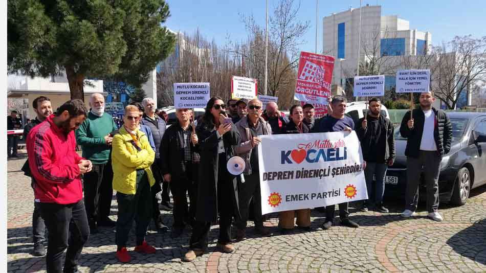 Emek Partisi Kocaeli İl Örgütü, Kocaeli Büyükşehir Belediyesi önünden seslendi: "Mutlu şehir, deprem dirençli şehirdir"