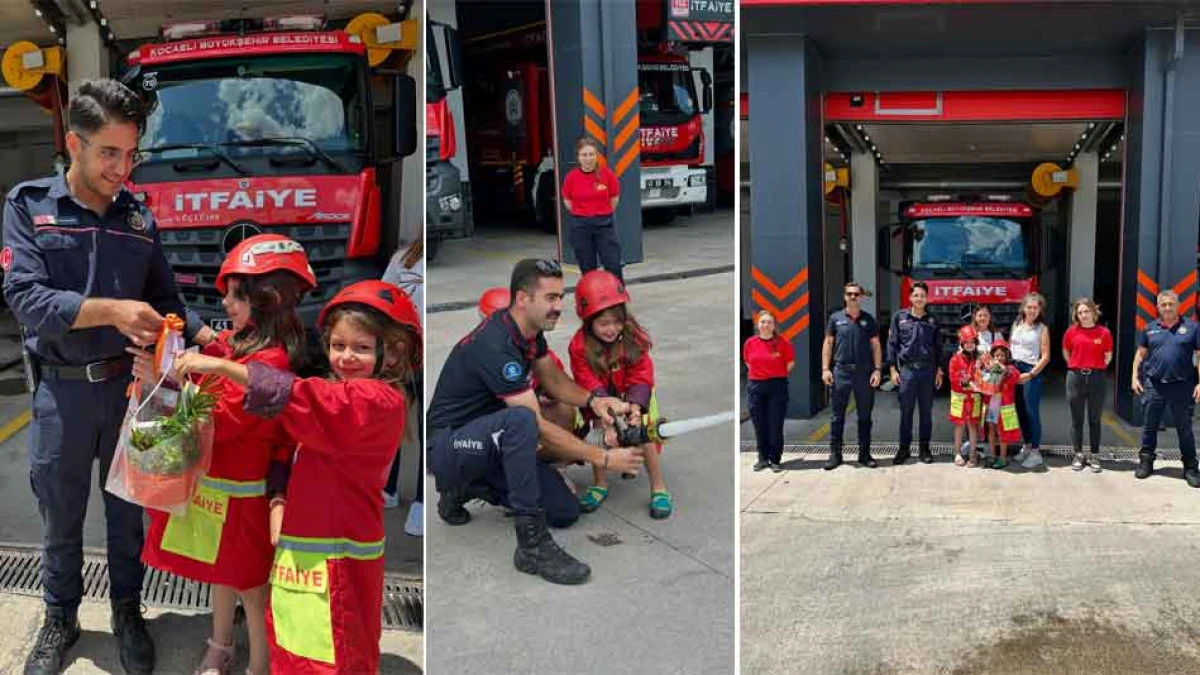 Kocaeli itfaiyesinin Derince'de ki yangına müdahale eden itfaiye çalışanlarının dün iki küçük sevimli misafirleri vardı. Erva ve Sena iki çocuk yangın müdahalelerinden sonra ziyaret ettikleri itfaiyeci amcalarına hediyelerini takdim ederek, fedekarca çalışmaları için kendilerine teşekkür ettiler. İtfaiyeci amcaları da onlara mini bir yangına müdahale tatbikatı yaptırdılar..