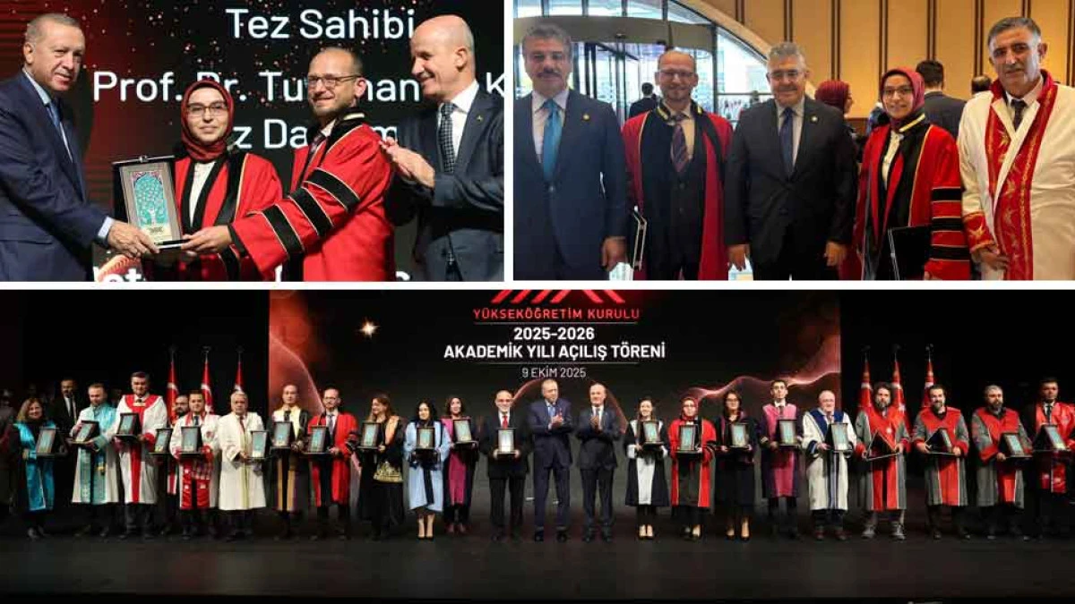 Ödüller, Beştepe Millet Kongre ve Kültür Merkezi’nde düzenlenen 2025-2026 Yükseköğretim Akademik Yıl Açılış Töreni'nde sahiplerini buldu. Arş. Gör. Dr. Hatice Büşra LÜLECİ "Tez Sahibi" ve Prof. Dr. Tunahan ÇAKIR "Tez Danışmanı" olarak, GTÜ’nün bilimsel gücünü bir kez daha kanıtladı.
