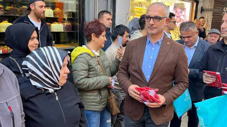 Kocaeli Büyükşehir Belediye Başkan vekili bugün Gebze Eskiçarşıda vatandaşlara bayrak dağıttı..
