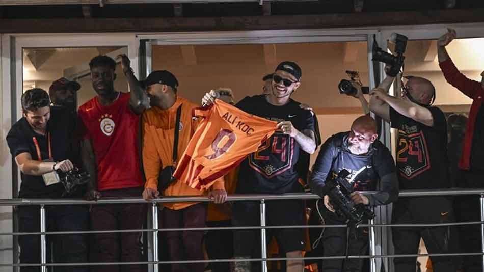 Taraftarla kutlama yapan Icardi önce "Fener ağlama" tezahüratını başlattı, daha sonra ise Fenerbahçe Başkanı Ali Koç'un adının yazılı olduğu Galatasaray formasını giydi.