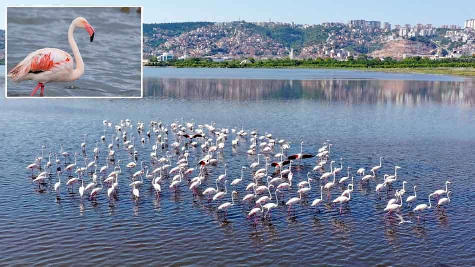 Kocaeli'nin önemli doğal zenginliklerinden İzmit Körfezi Sulak Alanı, son dönemde sayıları artan flamingolarla şenlendi. Su ve kıyı kuşu türlerinin göç yolu üzerindeki önemli duraklardan olan alan, göçmen kuşların beslenme ve barınma ihtiyaçları açısından ayrı önem taşıyor. Flamingoların kışlama noktası konumunda bulunan koruma altındaki sulak alan, gün batımında da ayrı bir görsel şölen sunuyor. İzmit Körfezindeki zengin plankton, alg ve mikroorganizmalarla beslenen flamingolar, ağustos ve nisan ayları arasında sulak alanı kışlama bölgesi olarak kullanıyor. Flamingolar için vazgeçilmez bir dinlenme ve beslenme noktası olan İzmit Körfezi Sulak Alanında bu pembe renkli güzel kuşlarla ayrıca görsel bir şölen oluşturuyor. Flamingoların her yıl sayılarının artarak burayı tercih etmesi Büyükşehir’in çevreye yönelik başarılı projeleriyle sulak alandaki ekolojik iyileşmenin etkileri için de önemli bir gösterge oluşturuyor.