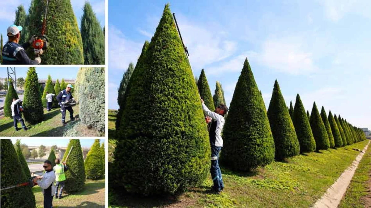 Kartepe Suadiye Kavşağı’nda gerçekleştirilen form budaması çalışmaları ile Gold Rider, Leylandi ve Mavi Servi türündeki ağaçlara piramidal ve konik şekiller verilerek hem estetik bir görünüm sağlandı hem de ağaçların sağlıklı yaşam alanları korundu. Ekipler, budamanın yanı sıra çevre temizliği ve diğer bakım işlemlerini de titizlikle yürütüyor.