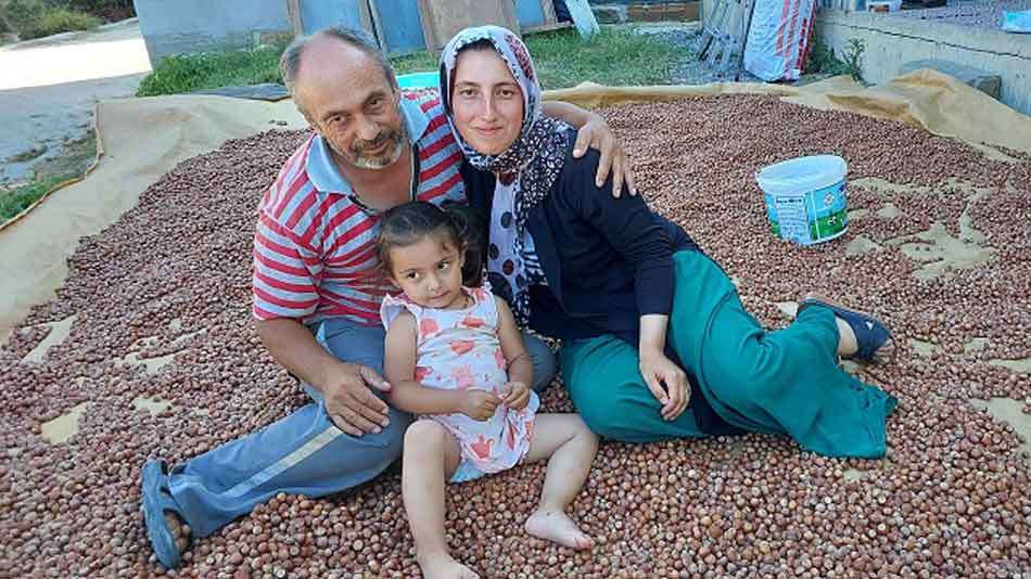 Kandıralı fındık üreticisi Zeki Ergün, kızı Aylin Çoban ve torunu Zeynep Çoban ile birlikte kurutulan fındıkların başında Kandıra'nın simge isimlerinden Ahsen Okyar'a poz verdiler..