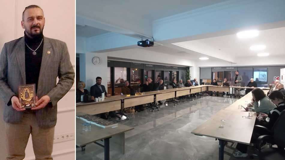 Araştırmacı – Yazar Süleyman Efe Kocazeybek slaytlarla desteklediği ve kitabından örnekler verdiği konuşmasının devamında, dünyanın çeşitli yerlerinden derlediği Türk Tamgaları hakkında bilgiler verdi. Türk Milleti’nin tarihten çıkarılması halinde geriye dünya tarihi kalmayacağını söyledi.