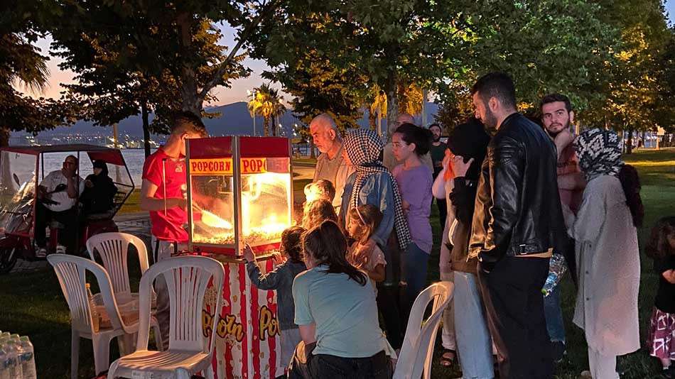 Yaz neşesinin bir başka güzel eğlencesi ise hiç kuşkusuz açık hava sineması oluyor. Yaz akşamlarının en nostaljik ve keyifli aktivitelerinden olan açık hava sineması Büyükşehir Belediyesi’nin Yaz Neşesi etkinliklerinde vatandaşlarla buluşturuluyor. Gölcük Kavaklı Sahili’ndeki vatandaşlar da yerel müzisyenler konserinin ardından açık havada “Bizim için Şampiyon” adlı filmi izledi. Büyükşehir’in mısır ikramı eşliğinde filmi izleyen vatandaşlar, keyifli bir yaz akşamı geçirmenin mutluluğunu yaşadı.
