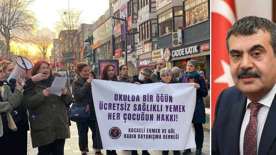Kocaeli Ekmek ve Gül Kadın Dayanışma Derneği Milli Eğitim Bakanı Yusuf Tekin’in bir öğün ücretsiz sağlıklı yemek talebi için yaptığı açıklamaya tepki gösterdi. Kocaeli Ekmek ve Gül Kadın Dayanışma Derneği "Bir öğün ücretsiz sağlıklı yemek haktır, derhal tüm okullarda uygulanmalıdır!" dedi..