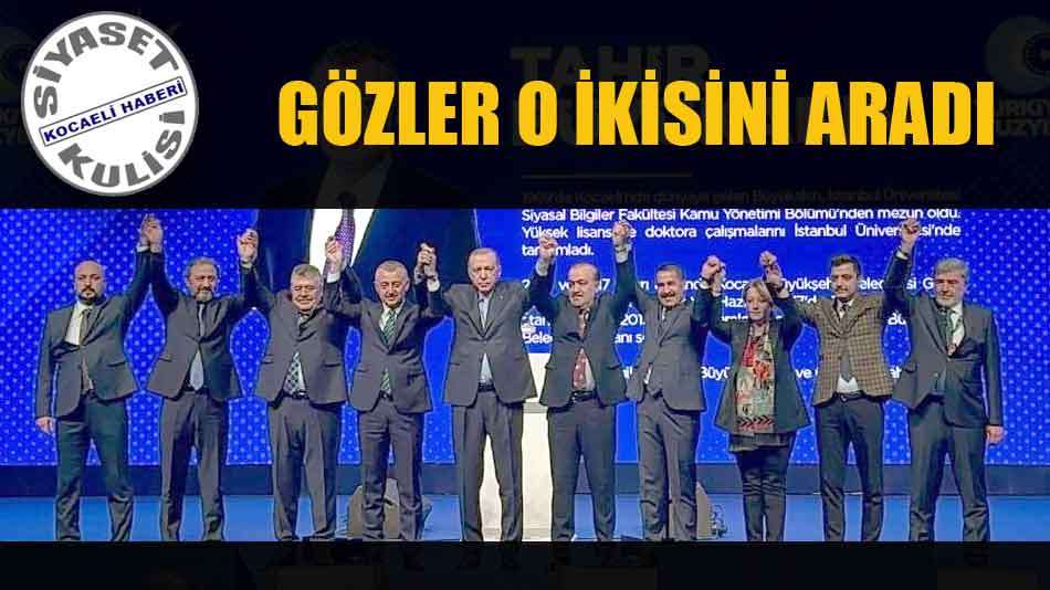 Çağrılardan herkes sahneye çıkarak yerlerini alırken, Ak Parti Kocaeli milletvekillerinden Prof. Dr. Sadettin Hülagü ve Radiye Sezer Katırcıoğlu'nun sahnede yer almaması karşısında, programı tv'den canlı olarak izleyen binlerce Kocaelili "Bu iki milletvekilimiz neden sahnede değil" diye merak ettiler..