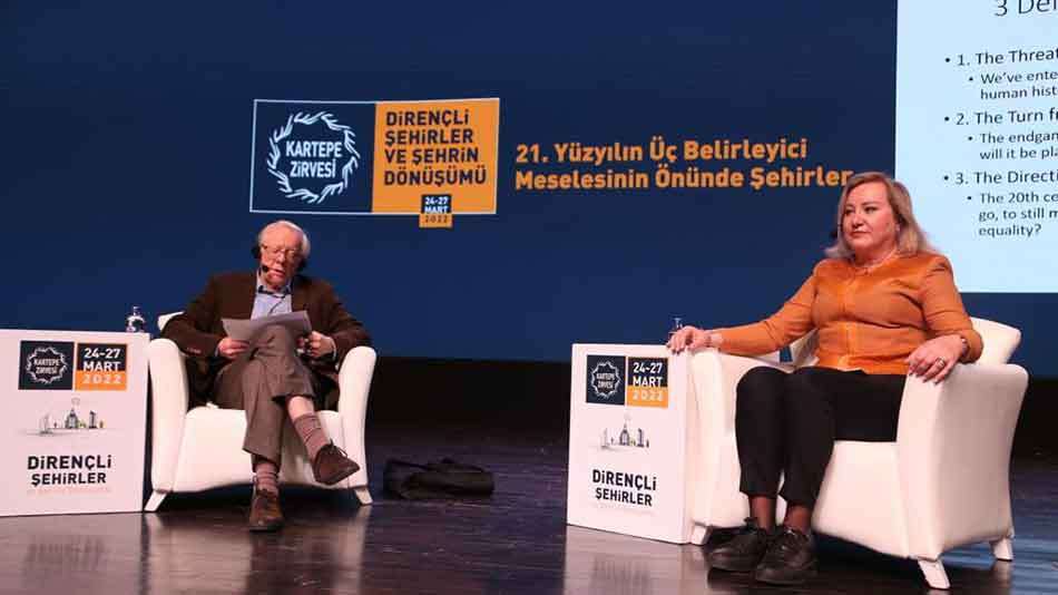 İsveç Kökenli Sosyal Bilimci Prof. Dr. Göran Therborn şehirler söz konusu olduğunda odaklanılması gereken üç detayın olduğuna dikkat çekerek konuşmasına başladı. İklim değişikliği ve buna bağlı olarak oluşan risklerin odaklanılması gereken detayların birincisi olduğunu söyleyen Prof. Dr. Therborn, öncelikli olarak iklim değişikliğinin farkında olmamız gerektiğini söyledi. Son 1200 senenin en sıcak dönemini yaşadığımızı ve gezegenimizin risk altında olduğunu aktaran Prof. Dr. Therborn, bu yüzyılı bu anlamda bir şeylerin başlangıcı olarak kabul etmemiz gerektiğini dile getirdi. Prof. Dr. Therborn, yaşadığımız yüzyıl içinde dünyanın kaderine yön vereceğinin altını çizdi.