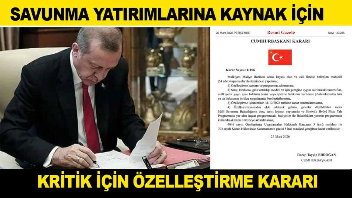 Özelleştirme İdaresi Başkanlığı tarafından yürütülecek süreçte, taşınmazların satışından elde edilecek gelirin doğrudan savunma sanayi projelerinde kullanılması hedefleniyor. Karar, Resmi Gazete’de yayımlanarak yürürlüğe girdi.