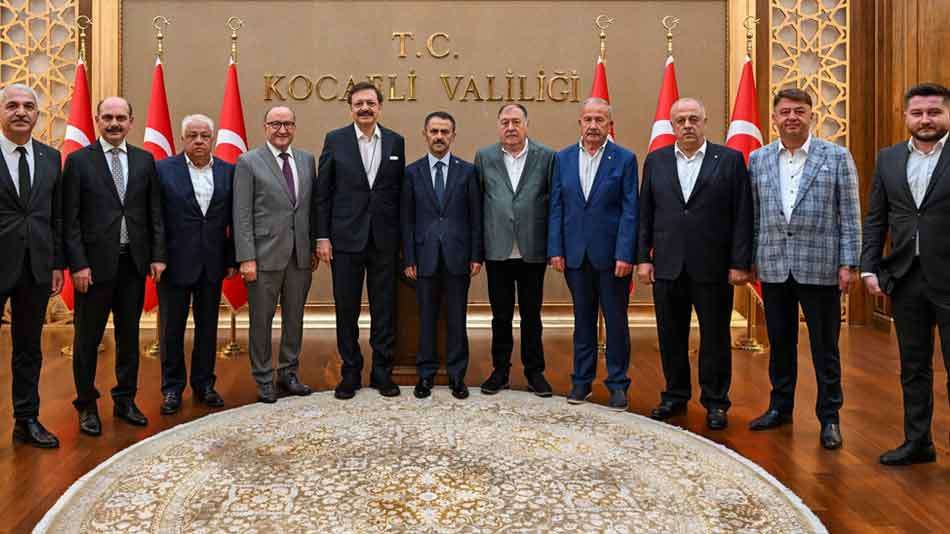 Türkiye Odalar ve Borsalar Birliği Başkanı M. Rifat Hisarcıklıoğlu’na Kocaeli Valiliği ziyaretlerinde; Kocaeli Sanayi Odası Başkanı Ayhan Zeytinoğlu, Gebze Ticaret Odası Yönetim Kurulu Başkanı Abdurrahman Aslantaş, Körfez Ticaret Odası Yönetim Kurulu Başkanı Recep Öztürk, Nevşehir Ticaret ve Sanayi Odası Meclis Başkanı Mehmet Ali Öbekli, Nevşehir Ticaret ve Sanayi Odası Yönetim Kurulu Başkanı Mehmet Arif Parmaksız, Nevşehir Ticaret Borsası Yönetim Kurulu Başkanı İbrahim Salaş, İş insanları; Mesut Sayar ve Cavit Vergiveren eşlik ettiler.