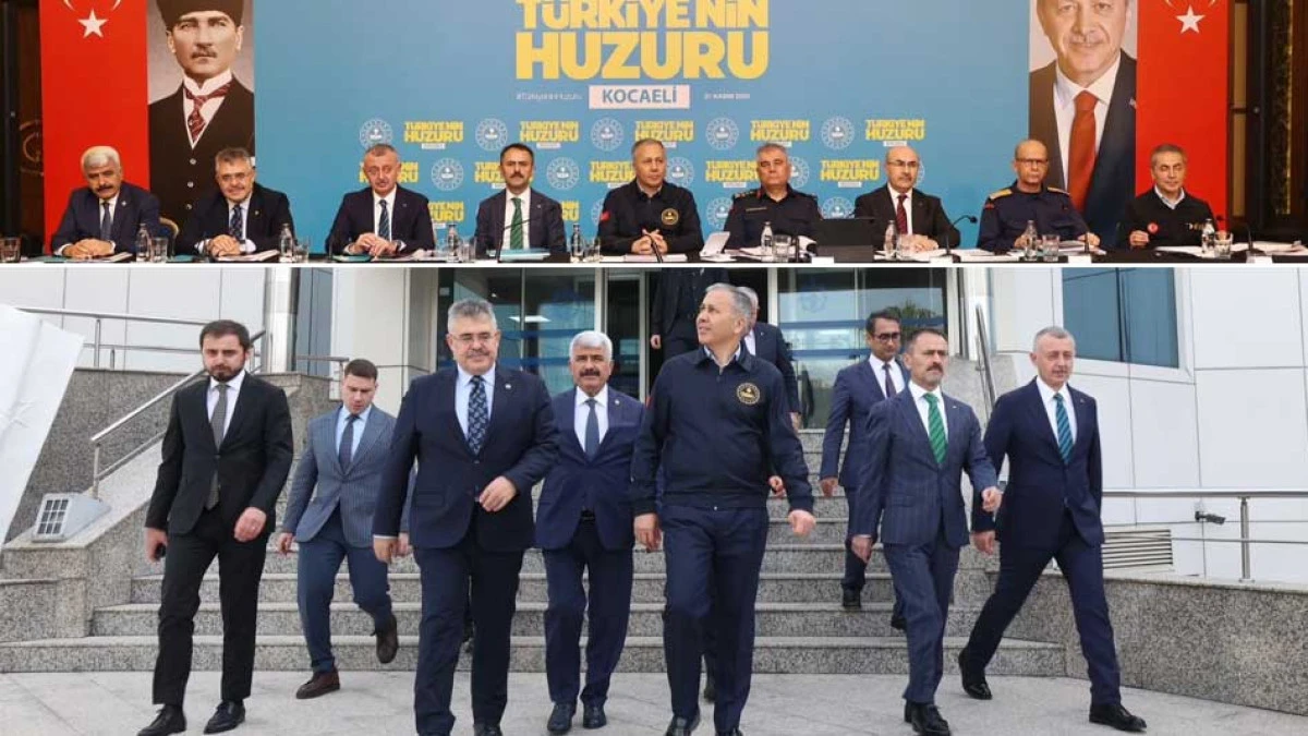 Kocaeli'de huzur ve güven ortamının sağlanması amacıyla yapılan uygulamaların, çalışmaların ve İçişleri Bakanlığı koordinesinde düzenlenen faaliyetlerin değerlendirildiği toplantıda İçişleri Bakanı Ali Yerlikaya, mesai mefhumu gözetmeksizin fedakarca çalışan İl Emniyet Müdürlüğü, İl Jandarma Komutanlığı, Sahil Güvenlik Komutanlığı ve iş birliği içindeki tüm kurumlara tebriklerini iletti.