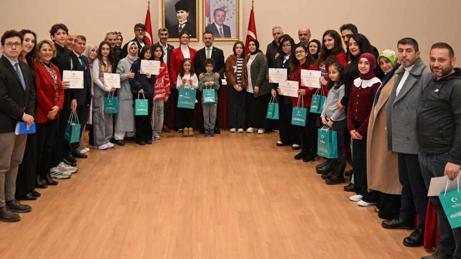 Vali İlhami Aktaş; yarışmada birincilik ödülü alan Ecem Aydoğdu ile yarışmaya katılan diğer öğrencilere hem hediyelerini hem de ilimizden yarışmaya eser gönderen tüm öğrencilere takdim edilmek üzere Ticaret Bakanlığınca gönderilen teşekkür belgelerini vererek, günün anısına fotoğraf çektirdi.