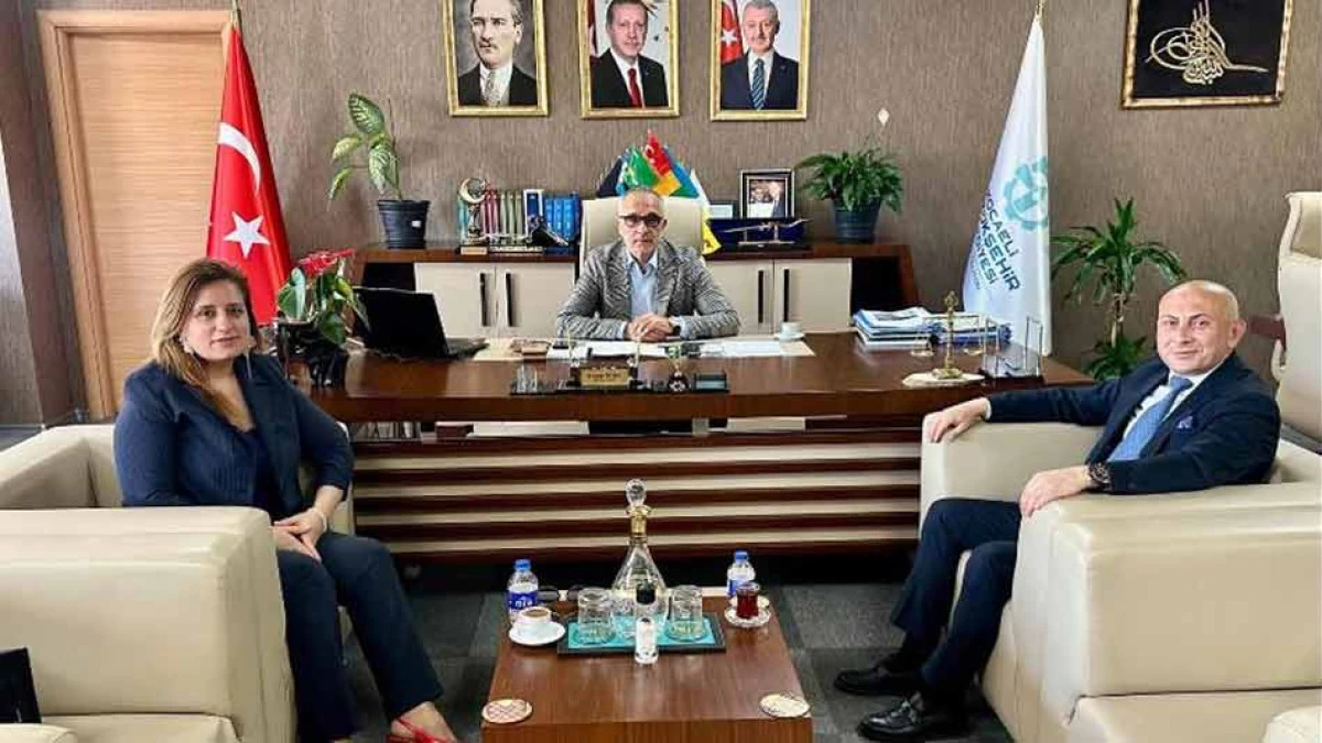 Gebze esnaflar Odası Başkanı Alper Demir ile Ak Parti Gebze önceki dönem yönetim kurulu üyesi ve PİMTAŞ A.Ş İş geliştirme ve Sürdürebilirlik dirtektörü Özlem Kozankurt, Kocaeli Büyükşehir Belediye Başkan Vekili Hasan Soba’yı makamında ziyaret ettiler..