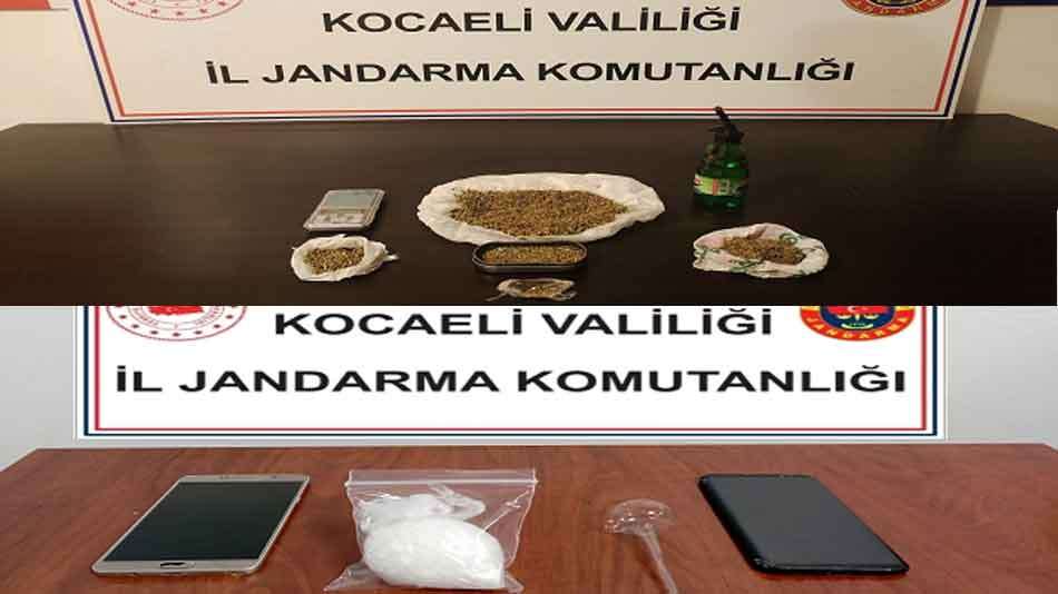 Kocaeli İl Jandarma Komutanlığının uyuşturucu ile mücadele kapsamında yaptığı Gebze ve İzmit'te yaptığı operasyonlarda çeşitli uyuşturucu maddeler ele geçirildi