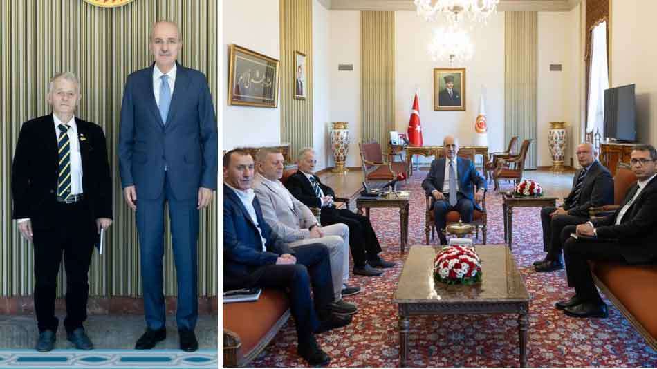 Türkiy e Büyü k Mille t Meclis i Başkan� � Numa n Kurtulmuş , Kırı m Tatarlarını n mill� � lider i v e Ukrayn a Parlamentos u Milletvekil i Mustaf a Abdülcemi l Kırımoğlu’nu , Ukrayna-Türkiy e Parlamentola r Aras� � Dostlu k Grub u Başkan� � v e Kırı m Tata r Mill� � Meclis i Başka n Yardımcıs� � Ahte m Çiygö z il e beraberindek i heyet i kabu l etti.
