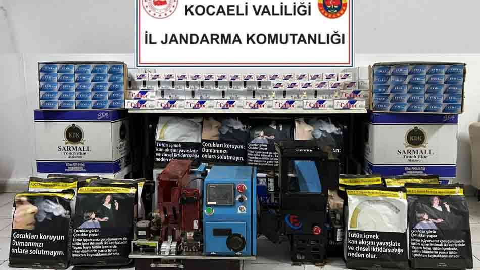 Kocaeli İl Jandarma Komutanlığınca; kaçakçılıkla mücadele kapsamında, 02 Kasım 2023 tarihinde Körfez ilçesi mülki sınırlar içerisinde bulunan bir evde yapılan arama sonucunda, (142.250) adet dolu makaron, (40.000) adet boş makaron, (50) kg kıyılmış tütün, (78) adet sahte tütün bandrolü ile (1) adet elektronik sigara sarma makinası ele geçirilmiş olup, (2) şüpheli hakkında adli işlem yapılmıştır.