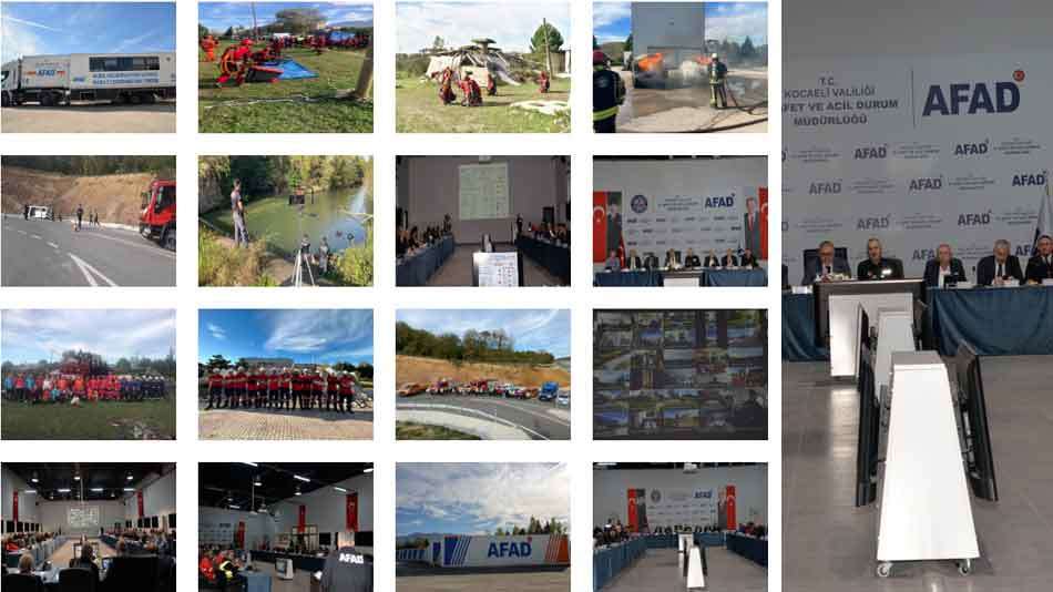 Kocaeli AFAD koordinesinde 12 ilçe Kaymakamlık bünyesinde kurulan afet yönetim ve koordinasyon merkezi, 22 çalışma alanı ve toplam 34 ayrı lokasyonda İl Afet ve Acil Durum Müdahale Planı kapsamında Yerel Düzey Saha, Masabaşı ve AYDES Tatbikatı yapıldı.