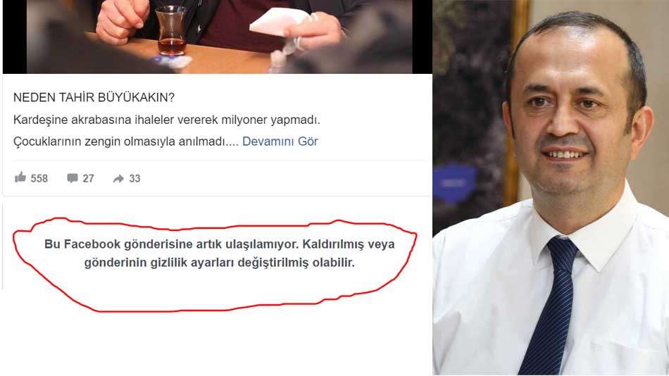 YAŞAR ÇAKMAK TAHİR BÜYÜKAKIN PAYLAŞIMINI NEDEN SİLDİ?